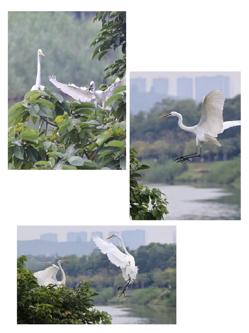大沙河清澈宽阔的河道,是大白鹭、小白鹭等水鸟的乐园。白鹭群在河水中从容踱步、捕食鱼虾,它们早已习惯了在闹市中生活,与人类和谐共处、互不打扰。