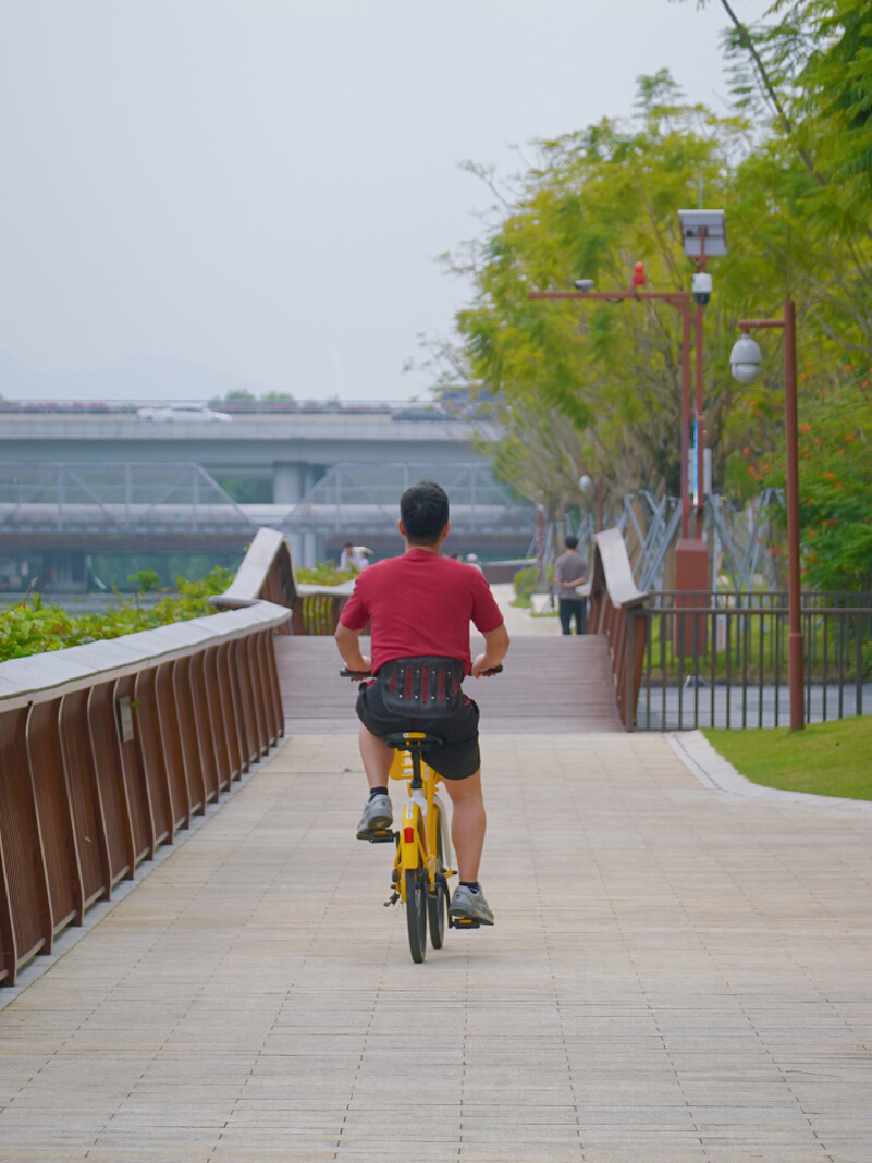 ▲市民在大沙河骑行。深圳晚报记者 程旭薇 摄