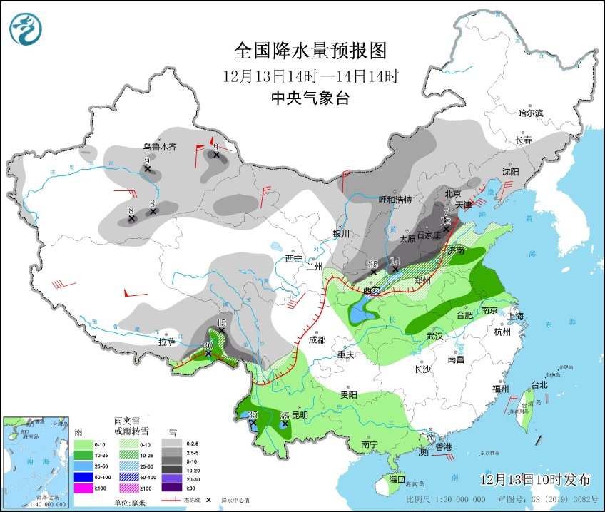 12月14日,中国中东部大范围雨雪持续。北京、河北、河南等多地现暴雪天气。部分地区采取调整交通运输、中小学居家学习等措施应对极端天气影响。