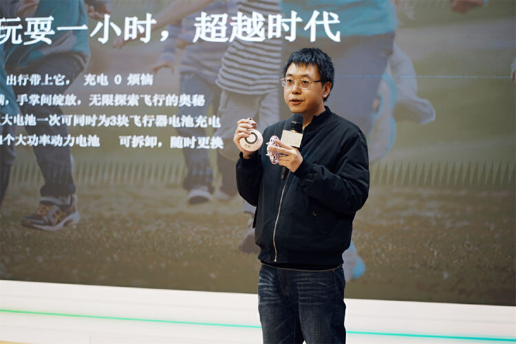 莲偶科技创始人兼CEO许总介绍了空间戒指飞碟L Ring UFO被创造的原因,是源于他最小儿子的一个愿望“世界上有没有可以不用充电一直玩的飞行器?”