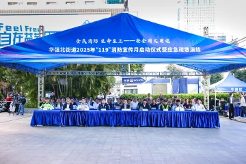 华强北街道消防安全月启动,筑牢商圈安全网 11月25日,华强北街道2025年“119”消防宣传月启动仪式暨应急疏散演练在华强北步行街隆重举行。活动围绕“全民消防、生命至上——安全用火用电”主题,组织开展了实战化应急疏散演练、沉浸式消防互动体验及插排以旧换新活动,以“演+学+用”相结合的方式,全面筑牢商圈消防安全防线。 本次活动由华强北街道办事处及深圳华强电子世界管理有限公司联合主办,深圳华强物业管理有限公司协办,同时邀请到福田区应急管理局、福田区消防救援大队、华强北派出所等相关单位负责同志参加。活动旨在增强辖区居民消防安全防范意识,提升辖区各支应急队伍的应急处置能力。 本次演练精准聚焦华强北商圈“商户密集、电气设备多、人流集中”的核心安全风险,以电子市场内锂电池着火引发火灾为模拟场景,涵盖“初期火灾扑救、被困人员搜救、消防通道打通、联合应急处置”等全链条环节。深圳市消防救援支队特勤大队一站、街道应急办、华航社区、医护人员、华强电子世界应急救援队等80余人快速响应,展现出“一分钟出动、三分钟到场、五分钟处置”的高效应急能力。 “演练不是走过场,而是真功夫的检验”。华强北街道相关负责同志指出,华强北的消防工作必须走出“大水漫灌”的误区,实现“精准滴灌”。聚焦核心风险攻坚,针对存在的私拉乱接电线、违规使用大功率设备等问题,联合消防救援部门开展“专项整治”,对重点场所推行“每日巡查+每周复查+每月联查”机制。 演练结束后,现场设置的多个互动体验区迅速吸引群众排起长队。主办方结合电子商圈特色与消防科普需求,打造了兼具趣味性与实用性的消防VR、互动抢答、模拟报警等体验项目,让大家可以“玩着学安全”。现场还设置了老旧插排以旧换新活动,吸引了大量市民驻足参与,活动现场气氛热烈。
