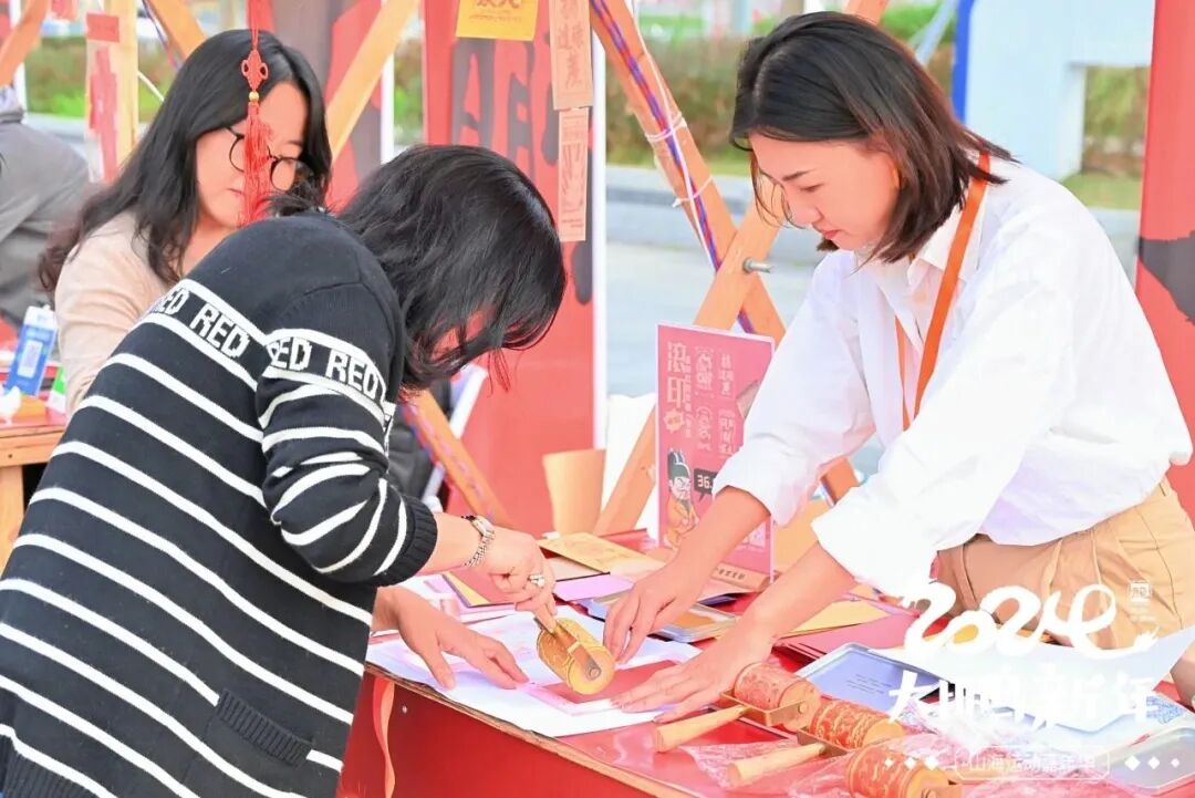 在大鹏文旅展览区,现场精彩的古风表演以及雕版拓印、滚筒印章、古法扎染等三大非遗技艺展演和互动工坊,让市民及游客感受大鹏所城的悠久历史与文化底蕴。