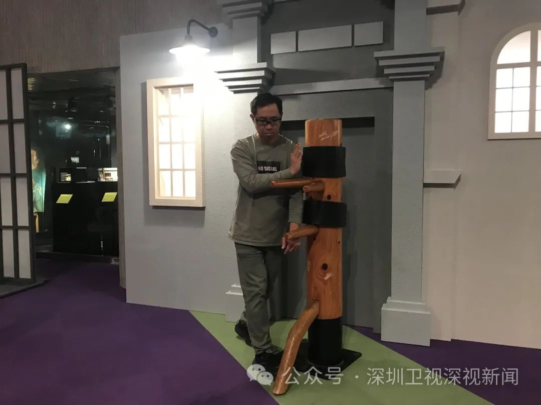 活动现场,“春咏香江”标语醒目,咏春元素随处可见。练习咏春拳的木桩、木凳木椅等,仿佛让人回到了那个年代。现场特别搭设的咏春巷,吸引了众多观众前来打卡参观。