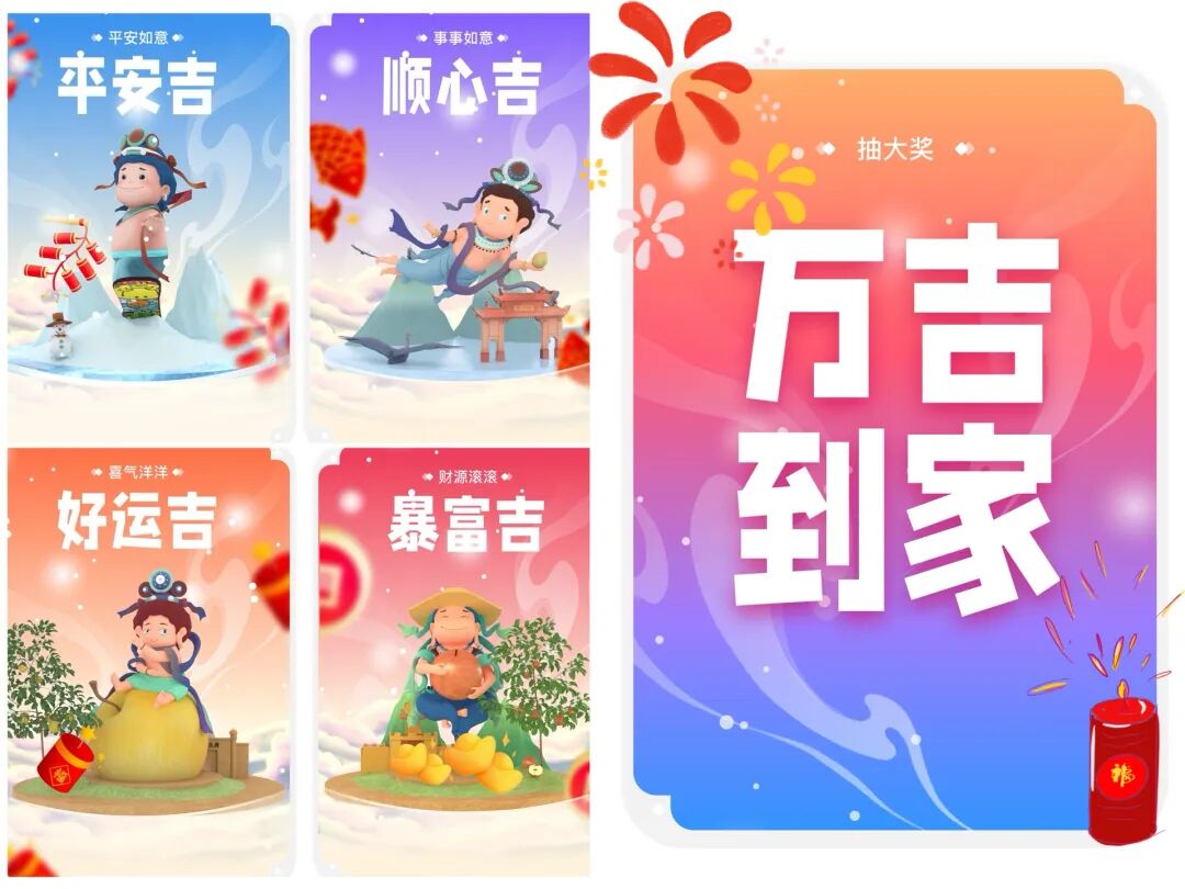 一起龙年行大运!不仅如此,吉卡还能送给亲朋好友,每一张“吉卡”寓意吉祥,设计精美,极具收藏价值。卡片的主角“龟兹宝宝”,由新疆克孜尔石窟壁画脱胎而来,经过团队深入源头策划开发和设计,不断打磨,以现代审美视角,捕捉穿越千年的文化之光,结合数字技术,创作出如今这颗闪耀在海陆丝路交汇平台的文创新星。