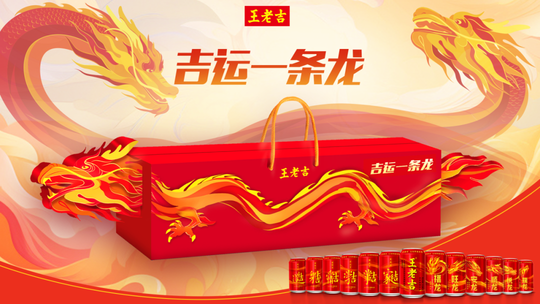 为迎接即将到来的龙年,王老吉将霸气蛟龙与红罐王老吉相结合,提前官宣春节龙年罐,推出“六吉龙年罐”“龙年姓氏罐”“吉运一条龙礼盒”和“姓运一条龙礼盒”,希望为广大消费者带来万事顺、百事兴的新年祝福与快乐。