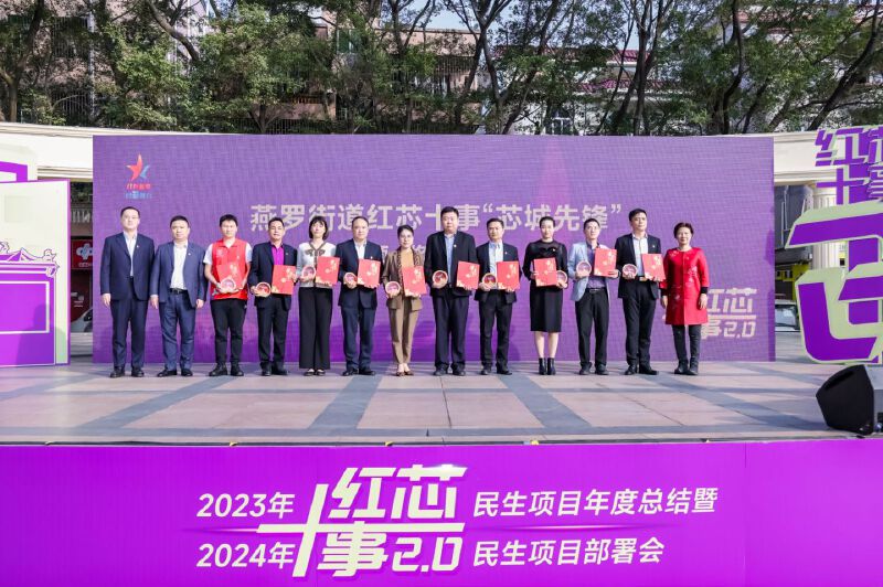 燕罗街道2023年“红芯十事”民生项目所取得的成绩,离不开干事创业的先进集体,离不开推进实施的党员干部,离不开深度参与的广大市民。燕罗街道通过全方位梳理,遴选出10个先进集体,授予“芯城先锋”称号;遴选出10位先进个人,授予“红芯达人”称号。