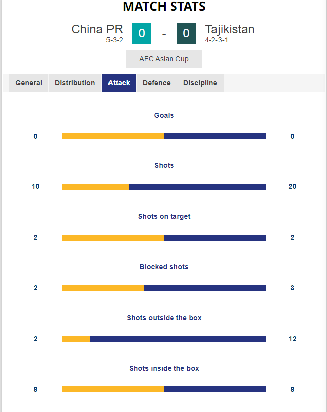 面对首次参加亚洲杯的塔吉克斯坦队,世界排名高出对手27位的国足,竟大部分时间处于极度被动。