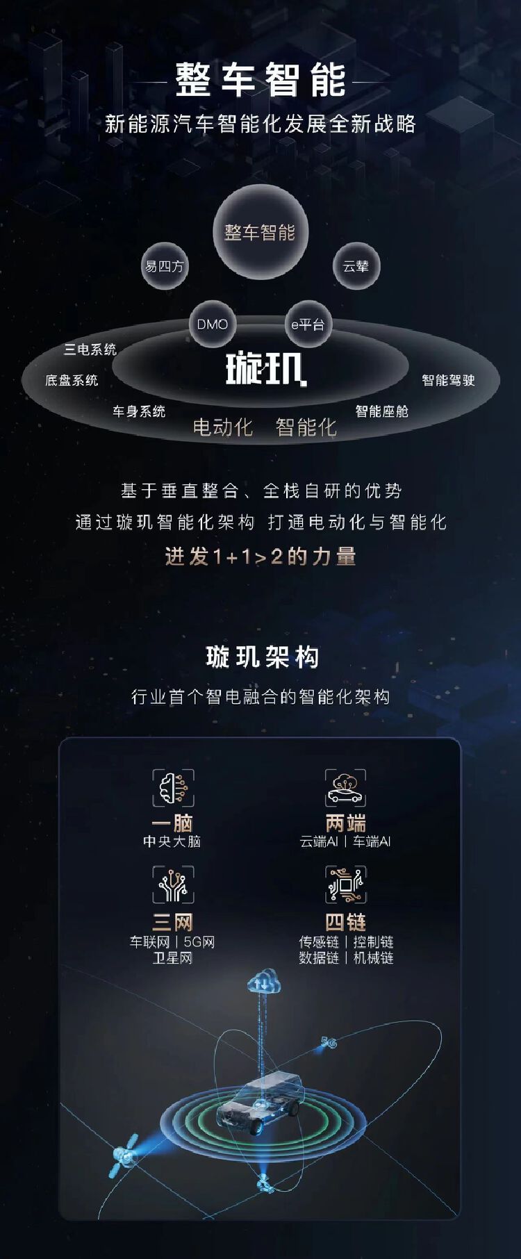 璇玑架构作为行业首个智电融合的智能化架构,是整车智能的重要组成部分,让汽车拥有了智能化的“大脑”和“神经网络”,使其可以像高级智慧生命体一样全面感知、集中思考、精准控制和协同执行。