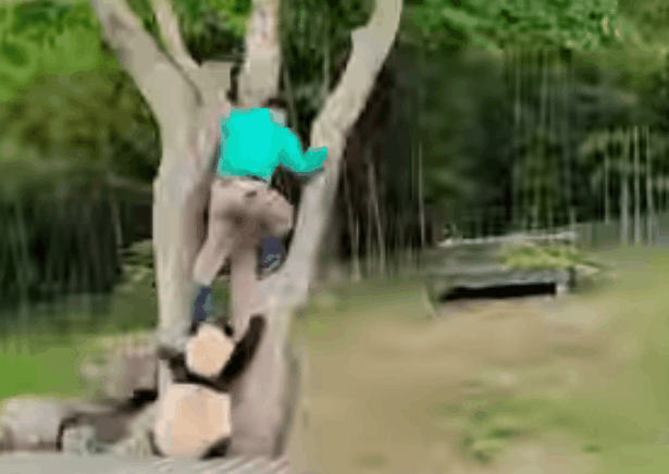 “福宝”抱着饲养员的腿撒娇。(图源:爱宝乐园官方社交平台账号)