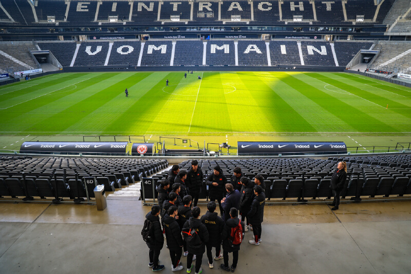在交流访问期间,法兰克福俱乐部还组织队员们深入了解德国足球文化。队长周易熹在观看了德甲比赛、参观了法兰克福俱乐部博物馆后感触颇深:“这里的足球历史文化给我们带来了很大冲击,这是一种传承,而且历久弥新,真的开阔了眼界。”