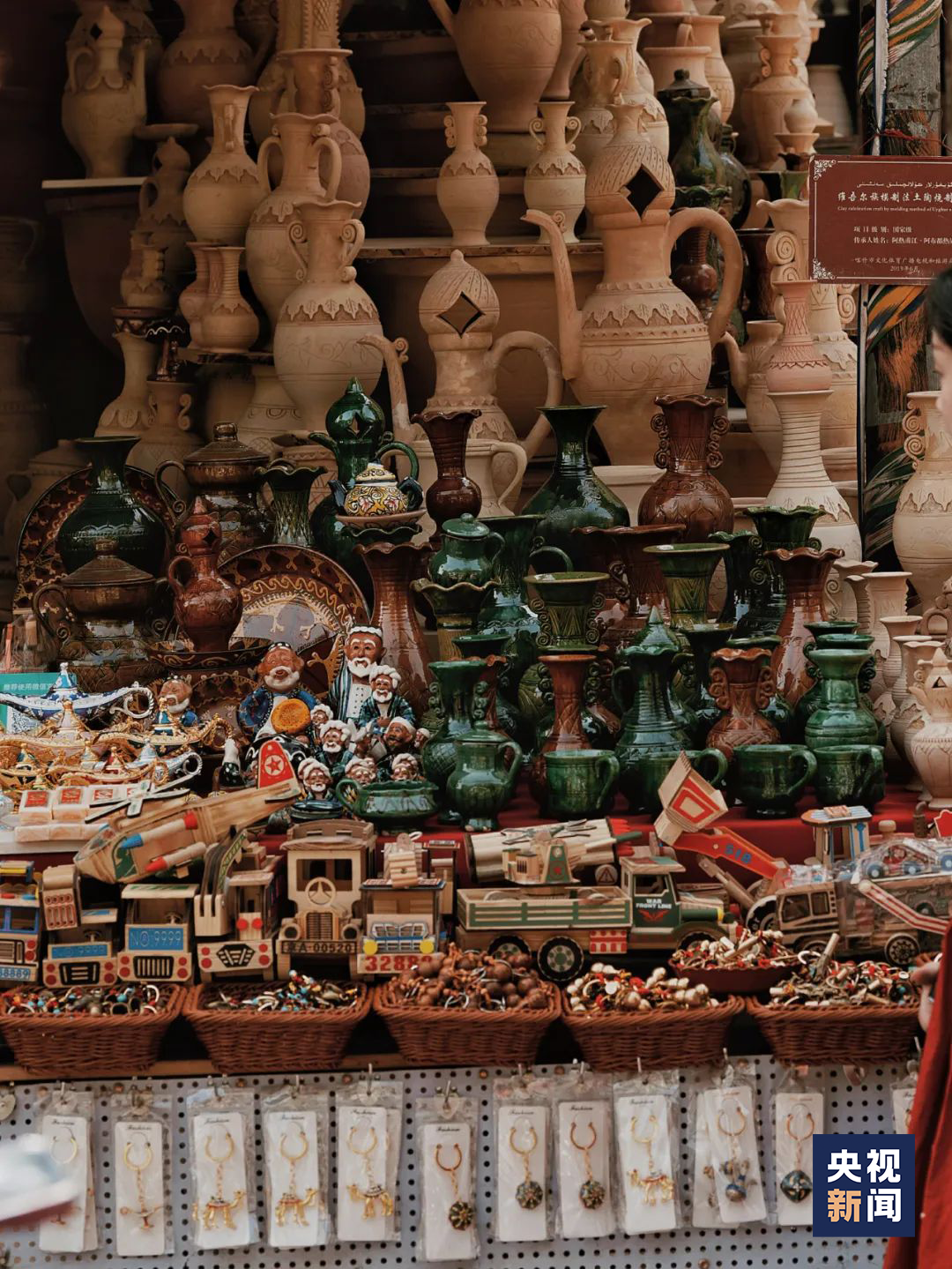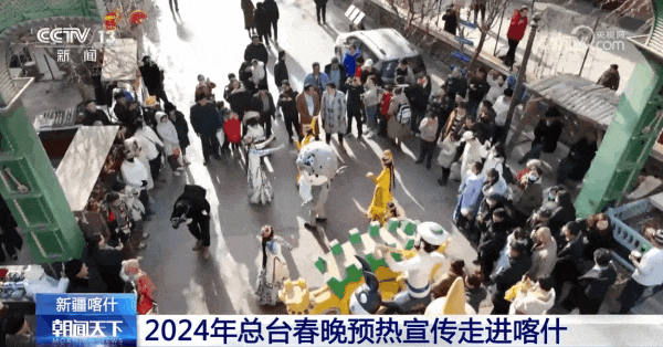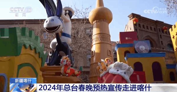 近日,总台春晚预热活动——总台文创龙年大集亮相喀什,用总台文创装饰的花车,成为游客合影打卡的热点。