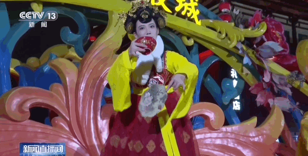 预热活动还结合西安特色元素——大唐不夜城的不倒翁表演还将总台春碗融入其中,为游客送上陕西的特产柿饼,惊喜满满。