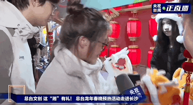 总台春晚预热活动——总台文创龙年大集日前来到了大唐不夜城,展示了超过30种文创作品。喜庆可爱的龙帽,设计精美、寓意昂首奋进的春碗,都受到了大家的喜欢。