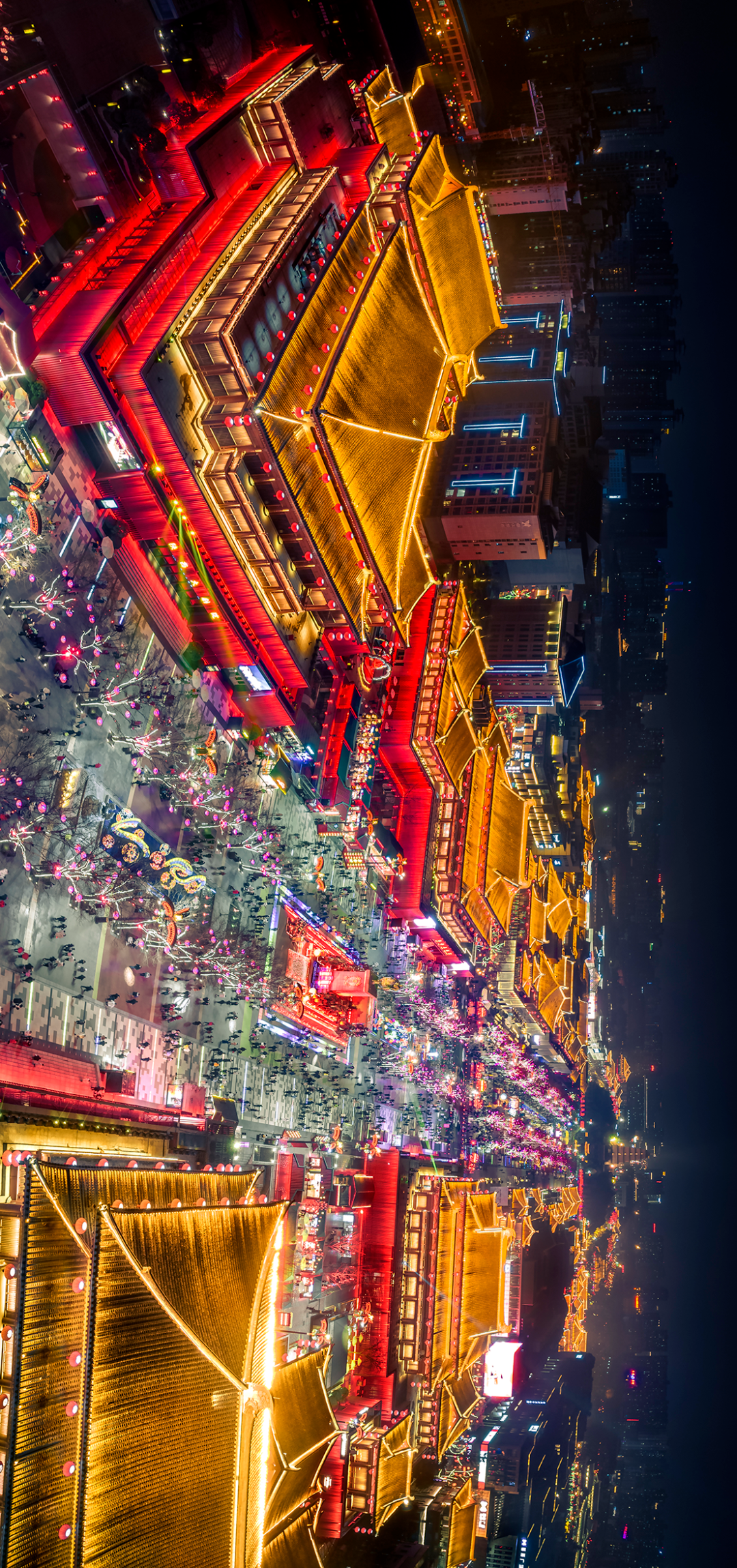 大唐不夜城北起大雁塔北广场,南至开元广场,是一条以盛唐文化为背景的大型仿唐建筑群步行街。
