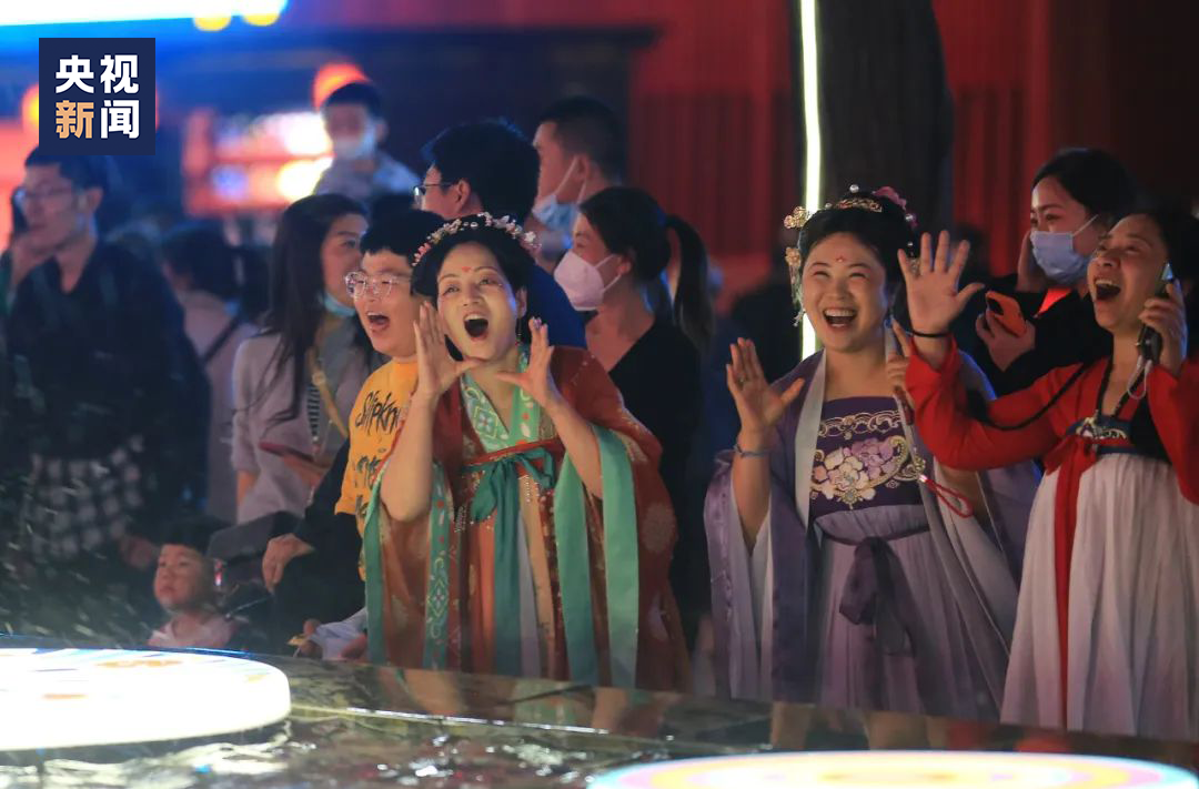 西安古称长安,作为十三朝古都,它历史悠久,浓缩了中华文明鼎盛时期的精华。西安分会场的国潮表演将陕派说唱、创意水袖、鼓乐交响等多种艺术形式相融合,大唐不夜城再现灯火满长安的恢弘景象。