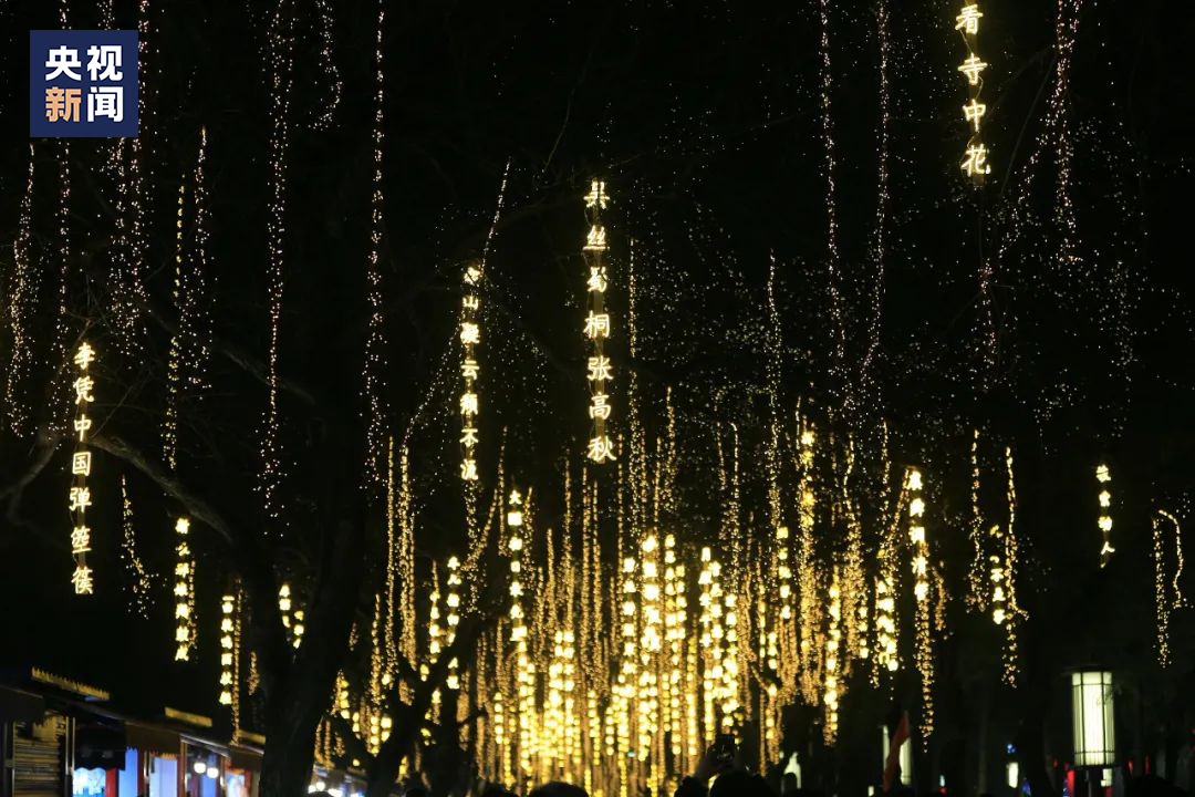 △“诗意长安”诗词灯串打造梦回大唐的时光隧道,长安文人的情怀在夜空中再现。