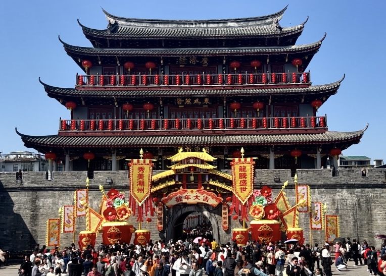 2月11日,广东潮州广济门城楼前人头攒动。新华每日电讯记者 赵紫羽 摄