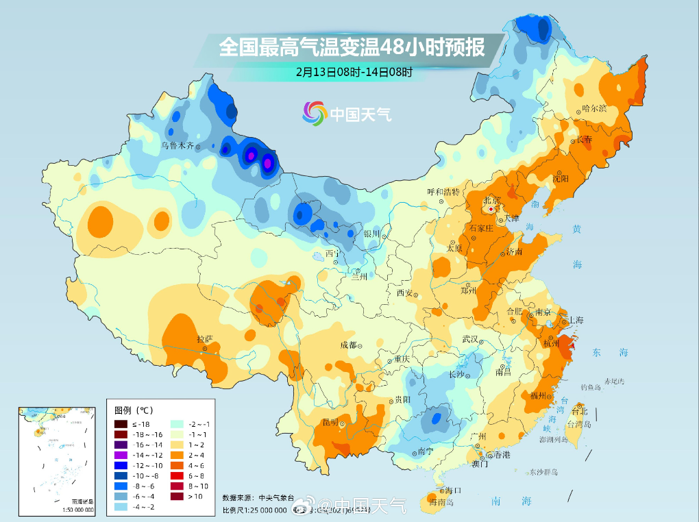 据中央气象台中期预报,17日-21日,将有寒潮自西向东、自北向南影响我国大部地区,气温先后下降6-10℃,部分地区12-16℃,局地18℃以上。中东部地区18-20日会陆续出现明显降温,由于预报时效较远,大家还要继续留意临近预报。