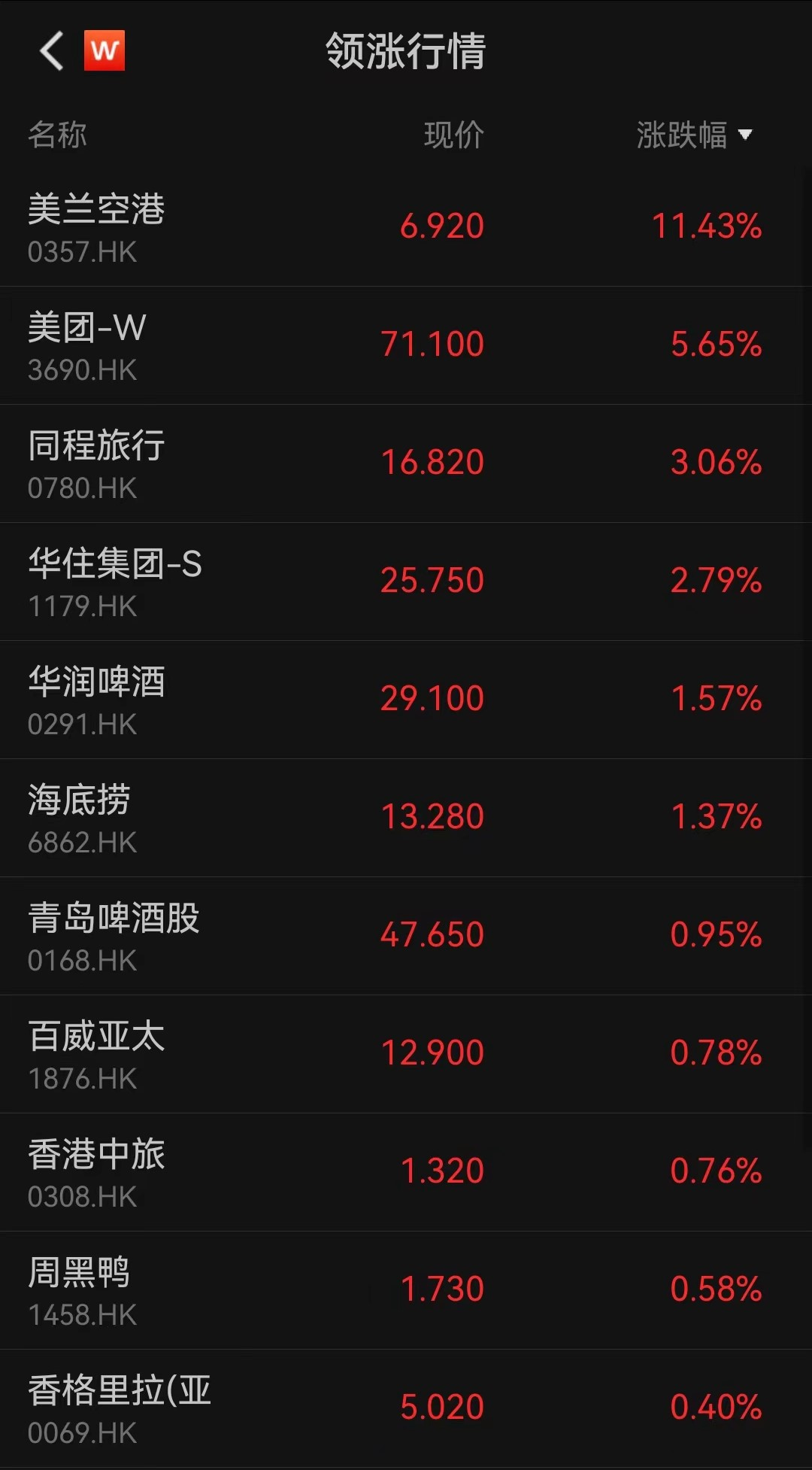 Wind数据显示,截至收盘,美兰空港涨逾11%,美团涨逾5%,同程旅行、华住集团、华润啤酒、海底捞等个股纷纷跟涨。