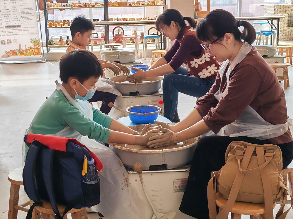 在南风古灶景区的玩陶艺术中心,欢声笑语此起彼伏,大人小孩其乐融融,体验着泥与火的神奇结合。