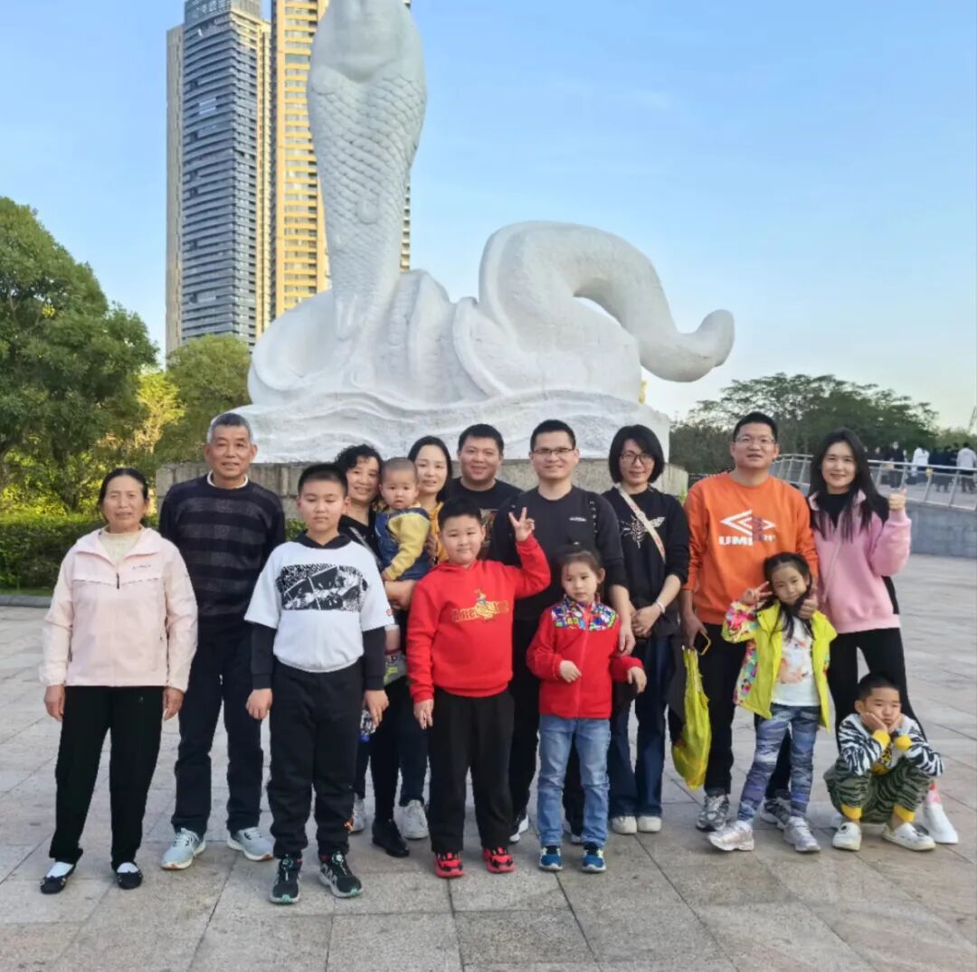 春节期间,李修瑞带着老伴,儿子儿媳,孙子孙女一大家人逛了花市,购买年货,爬了大南山,看了博物馆,瞻仰女娲补天雕像,还看了烟花秀……