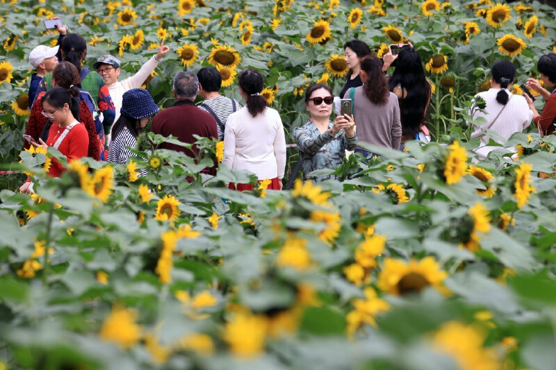 近日,位于福田区市民广场南广场市民花田的向日葵花海悄然盛放,一株株向日葵像一位位热情好客的姑娘,向日葵身姿摇曳,勾勒出一幅醉人的春日美景,招引市民慕名而来赏花、拍照打卡,感受别样惬意的都市生活。