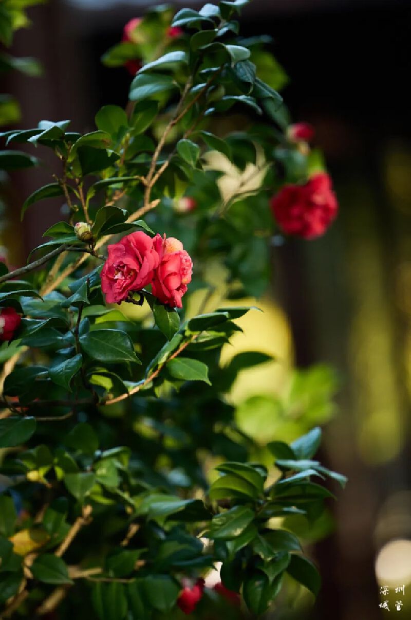 园博园的各色茶花热烈绽放,长廊的彩灯高悬,鲜花盛放中,它们簇拥在枝头,在春风中绽放,婉约动人。