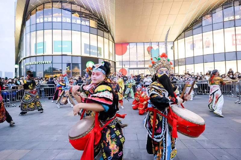 元宵逛商场买买买也是许多人的选择,在光明大仟里购物的体验却是相当不同的,在这里,有国家非物质文化遗产——潮汕英歌舞!