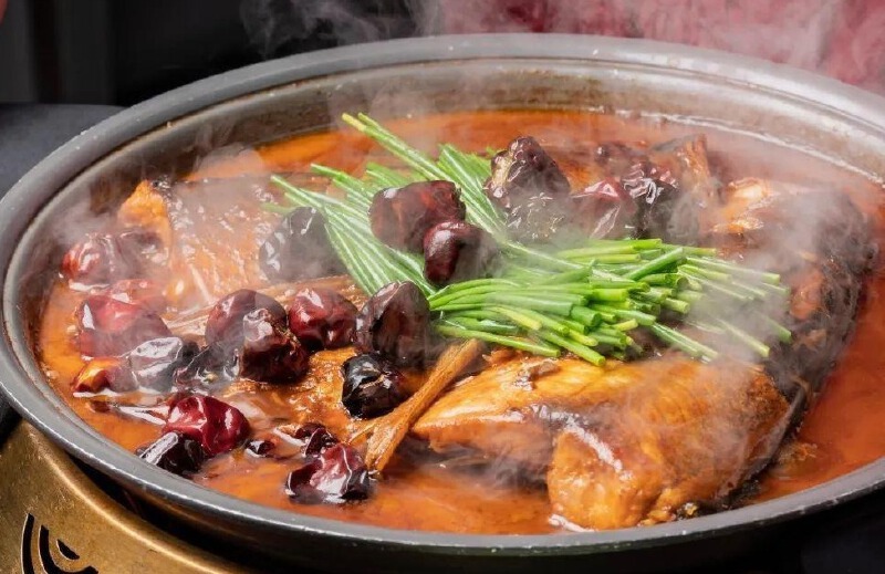 除了烤鸭,还有不少“宫廷秘制”值得一品。比如老北京水库鱼头,浓郁的汤汁都是加入了老鸡、老鸭、棒骨等料熬制后的高汤,每一口都是细嫩与爽滑。