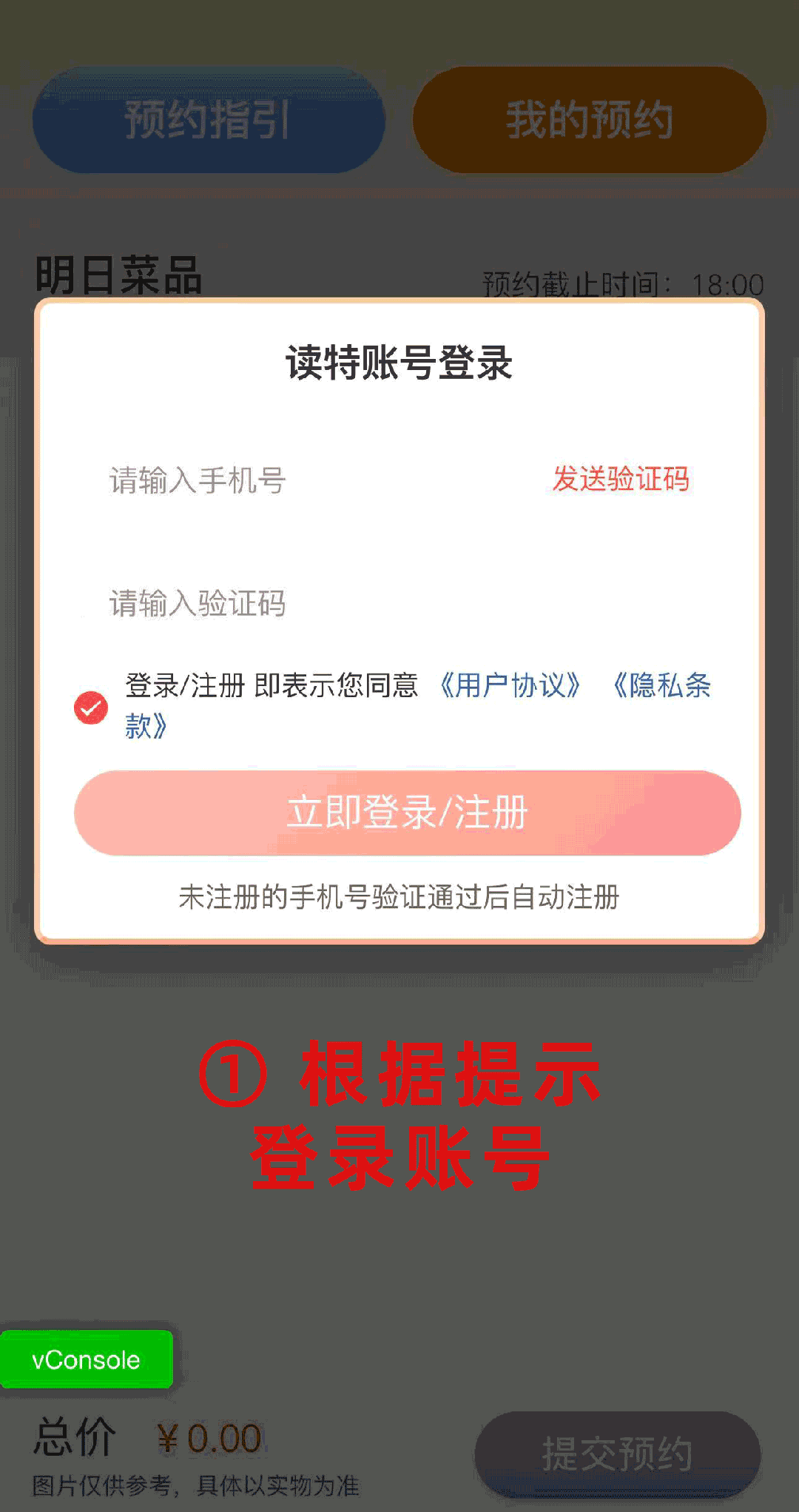 选择心仪的商品下单,工作日的6:00-18:00可以预约要在第二天取货的商品。