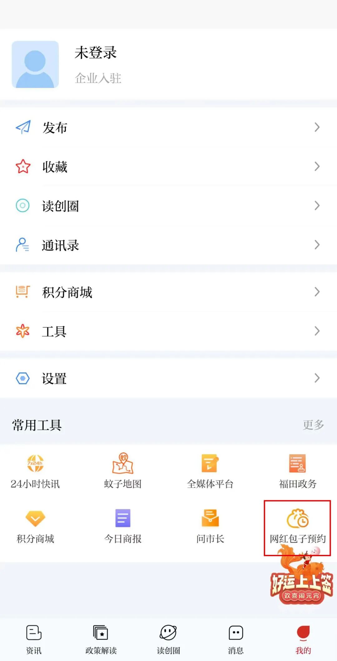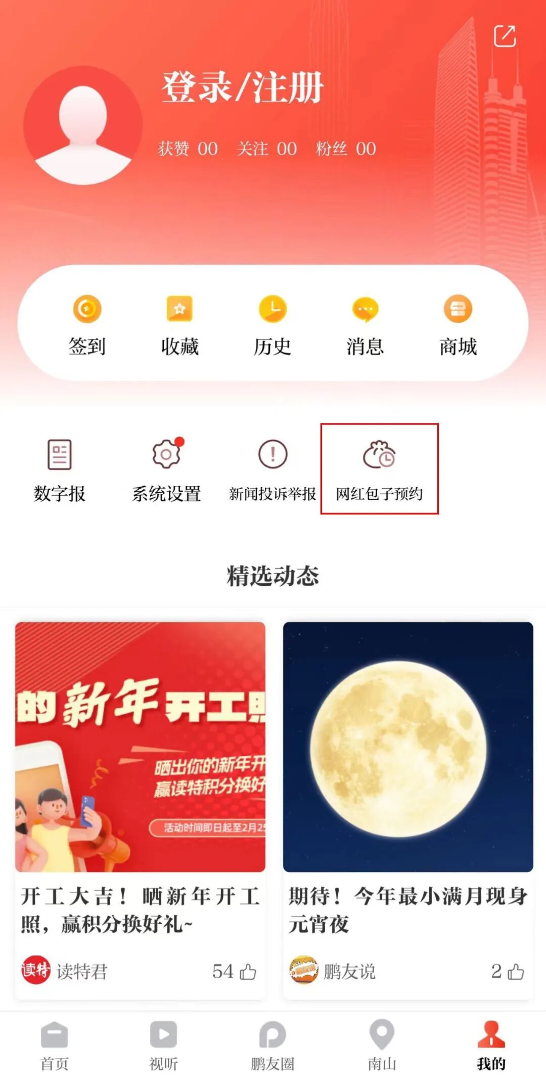 打开读特客户端/读创客户端,进入“我的”页面,选择【网红包子预约】