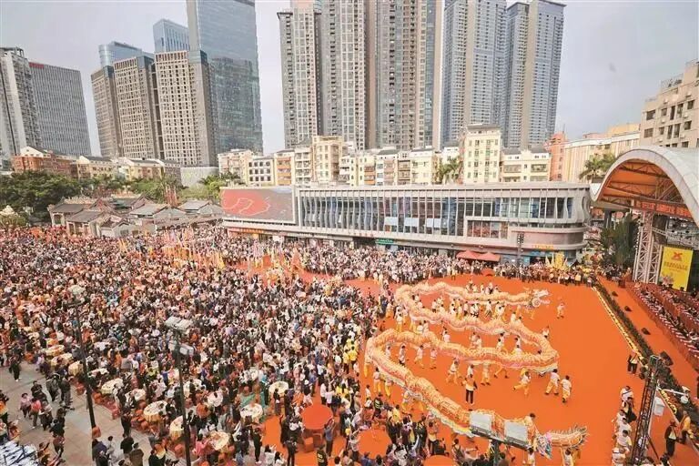 24日,省级非物质文化遗产项目下沙大盆菜活动在福田区下沙文化广场举行,席开千围,万人同赴盛宴。深圳特区报记者 杨浩翰 摄