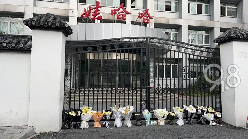 据杭州交通91.8微信公众号,2月25日,在杭州娃哈哈集团总部老大楼门口,也就是杭州上城区清泰街160号,大门口陆续有市民前来送鲜花悼念宗老。