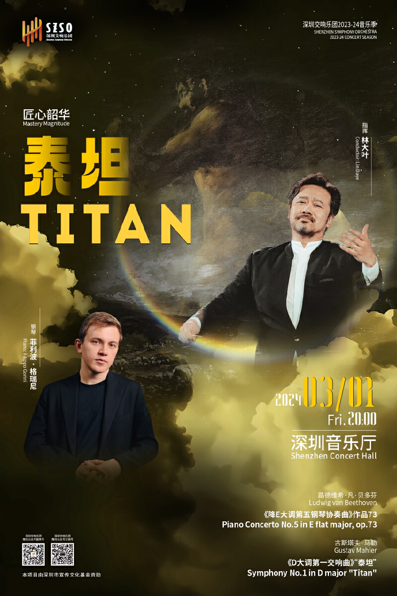 3月1日晚,深圳交响乐团将在深圳音乐厅迎来新春佳节后的首场音乐季演出,上演“匠心韶华”之“泰坦”音乐会,奏响德国著名作曲家贝多芬的《降E大调第五钢琴协奏曲》,以及奥地利作曲家马勒的《D大调第一交响曲“泰坦”》。