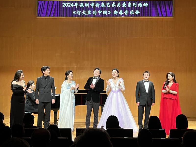 2月25日,“灯火里的中国”——深圳歌剧舞剧院新春音乐会在深圳音乐厅五楼小剧场带大家领略声乐艺术之美,深圳歌剧舞剧院青年歌唱家彭易、田思颖、李颖、杨粤莎、吉鹏宇、袁帅、陈再英和钢琴伴奏刘施岐通过《小河淌水》《一杯美酒》《敕勒歌》《大江东去》《我为祖国献石油》《灯火里的中国》等人们耳熟能详的作品,向观众彰显深圳顶尖文艺院团的“中国气派、当代风格、国际视野”,也激发大家热血澎湃的爱国之情。