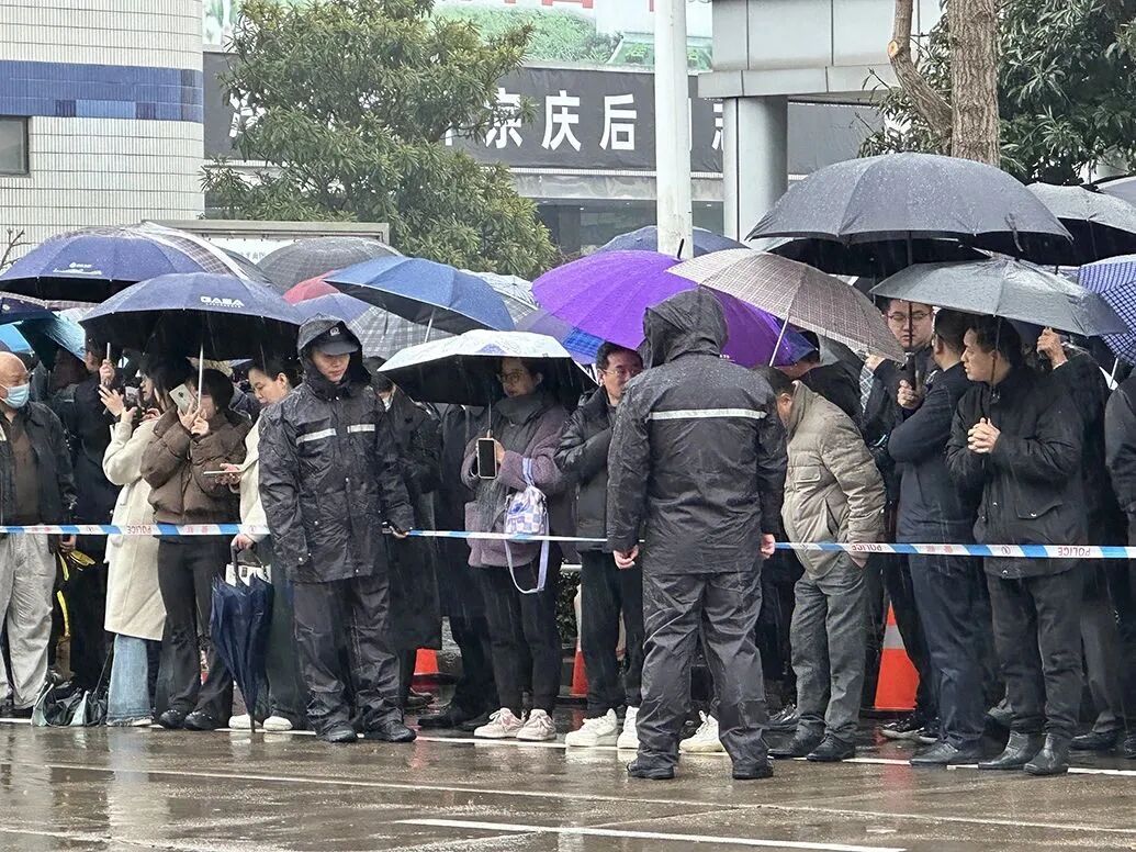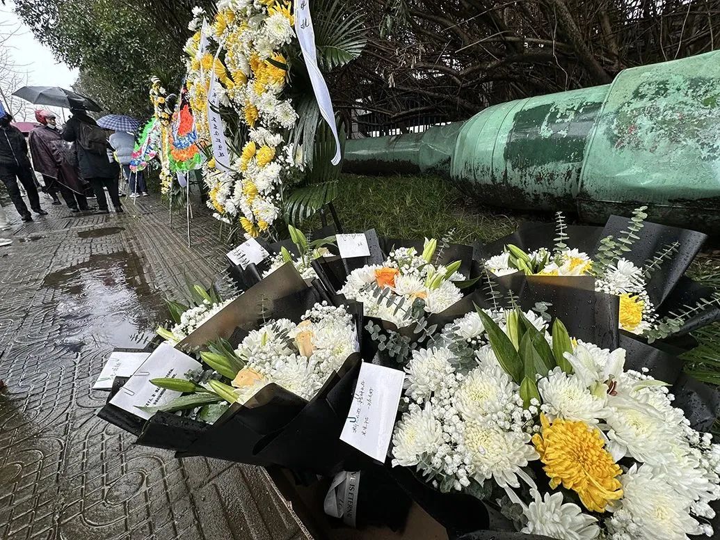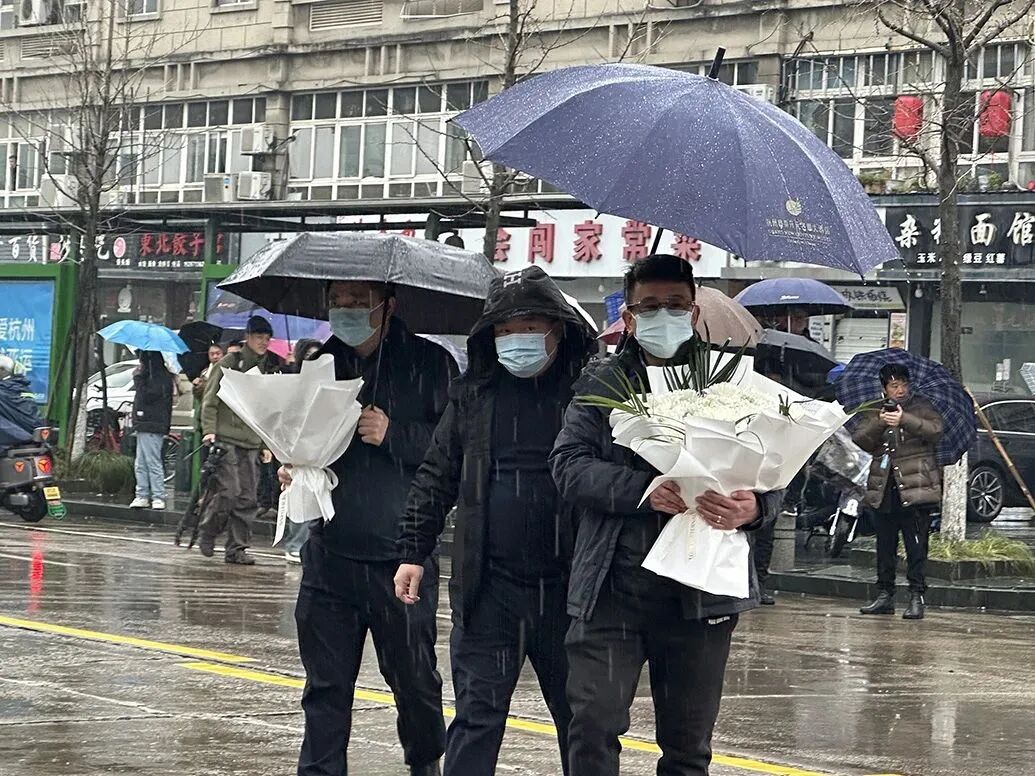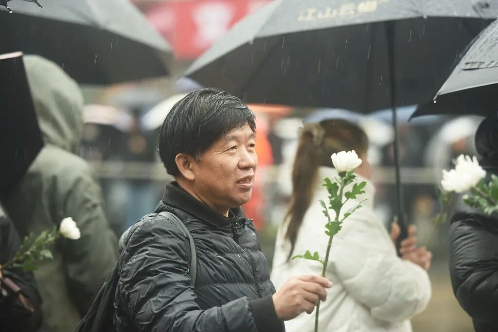 尽管细雨绵绵,但仍有不少市民自发排起长队前来悼念。
