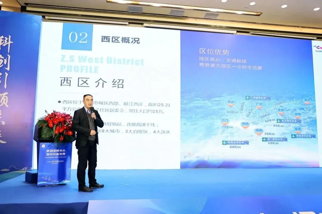 “西区街道250亩智慧产业园已在去年底全部实现封顶。就在昨天,达华建设集团又在西区摘得约24亩商业用地,准备打造建筑业总部,创新聚集建筑业全链条产业。同时,我们以‘工改’、旧改双轮驱动,将在北部片区整备超千亩工业用地,南部片区整备400亩连片江景商住用地。”郭卫华热情推介了街道现有招商资源,并表示,深中通道即将建成通车,中山迎来“深中一体化”和“科技创新强市”行动的关键之年,西区街道正积极融入粤港澳大湾区发展大潮,致力成为连接深圳创新资源与中山制造业优势的重要桥梁。希望深圳企业家朋友抢抓机遇,选择西区、扎根西区,做西区发展的“合伙人”“代言人”“投资人”,一同发展、互利共赢。