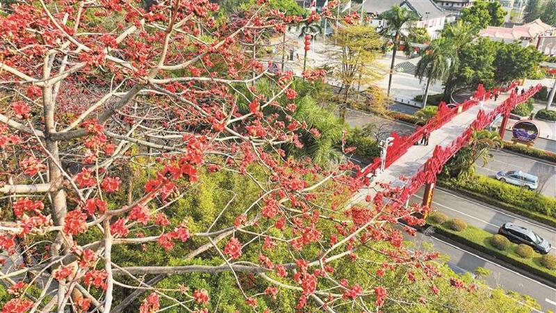 春意盎然的深圳处处鲜花盛开,特别是木棉花,那是南国特有的“英雄树”,树形挺拔,姿态顶天立地,枝头花瓣火红一片,带来南国春天“红”运当头的祝福。