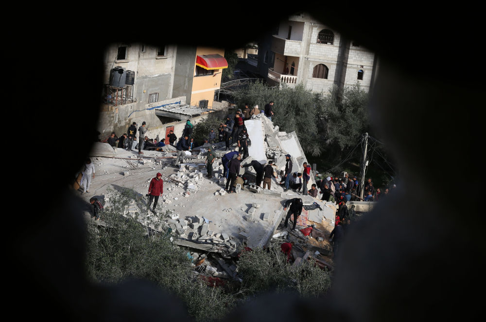 3月3日,在加沙地带南部城市拉法,人们查看被以军空袭破坏的建筑。新华社发(哈立德·奥马尔摄)