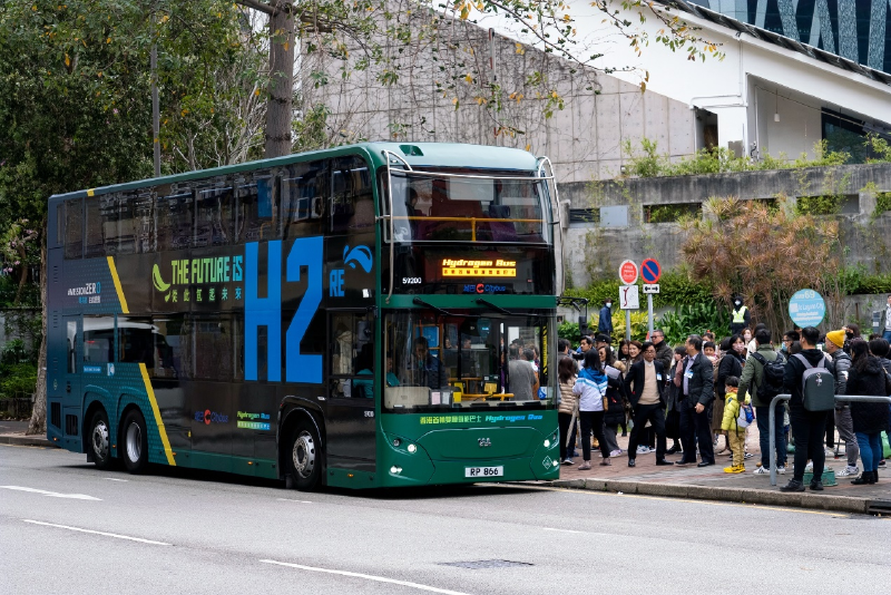 环保方面,氢气在发电过程中唯一的排放物是水,原理是氢气和氧气产生电化学反应生成水,没有任何污染,更加绿色环保。叠加加氢时间短、续航里程长,这在香港的路况环境下更具竞争力。香港首辆双层氢能巴士加氢时间最快仅需10分钟,可在香港路面行驶达300公里左右。