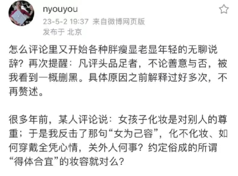 今天是,国际劳动妇女节。在这个特殊的日子里,我们关注到了一位身兼“科普、娱乐、美食、运动”等多重身份的微博博主nyouyou。