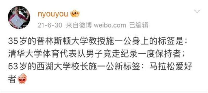 颜宁的老师施一公院士是一位马拉松达人,作为学生的颜宁,时常也会分享一些运动趣事。