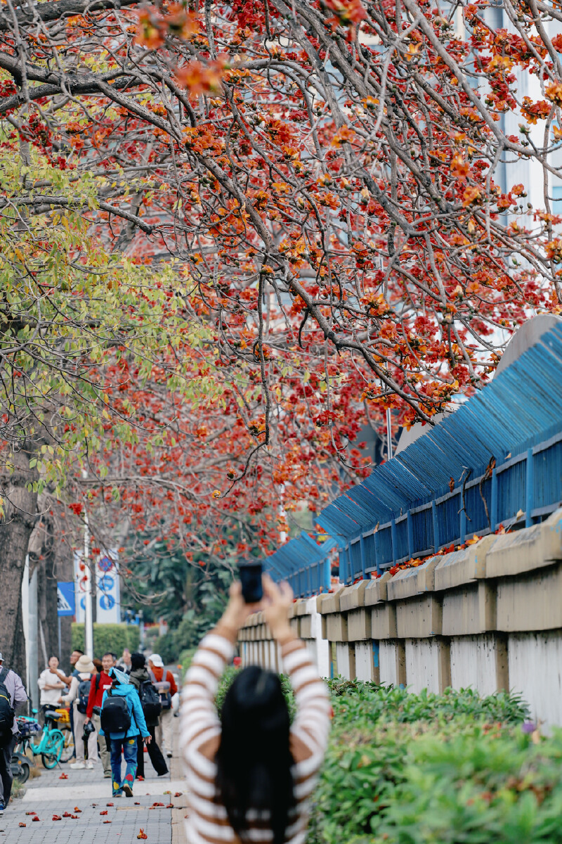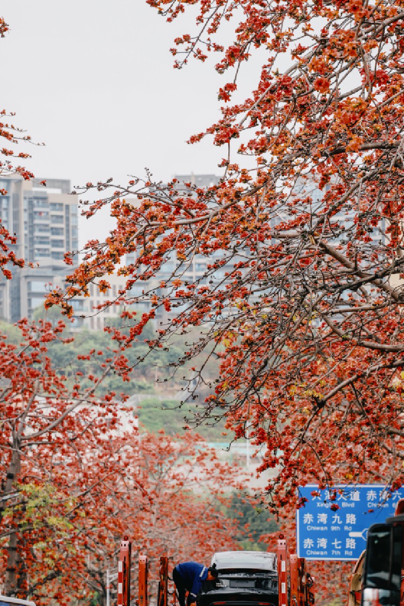 短短的赤湾五路,因木棉的盛放而变得热闹起来。街道上,各式各样的行人纷纷驻足,他们中许多都是特意而来,希望深入这片花的海洋,寻找着那一个个能够触动人心的瞬间。