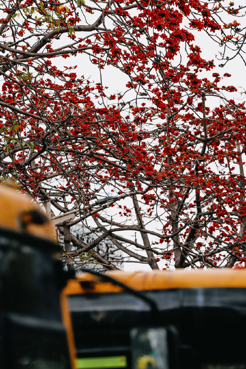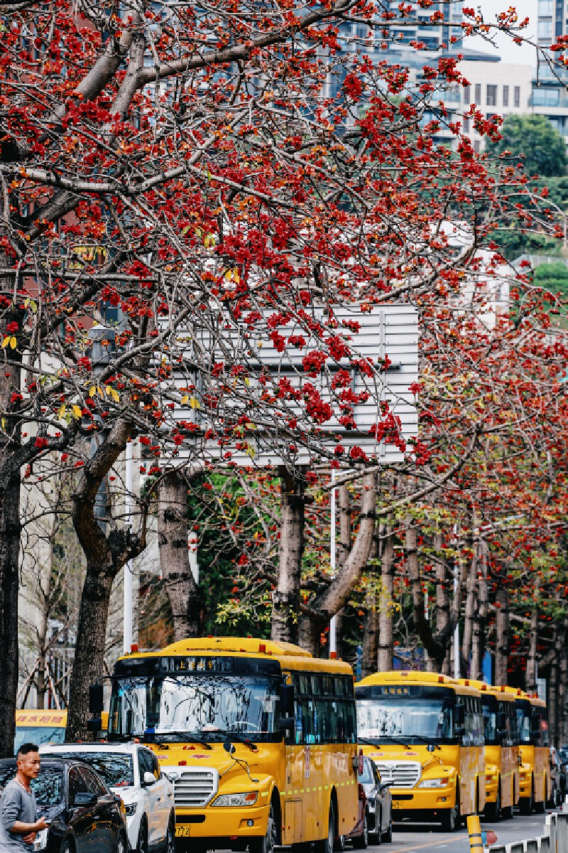 尤其是木棉花,那南国特有的“英雄树”,嫣红的花朵如同绚烂的霞光,将半边天际染成了醉人的红色。真是应了那句“却是南中春色别,满城都是木棉花。”