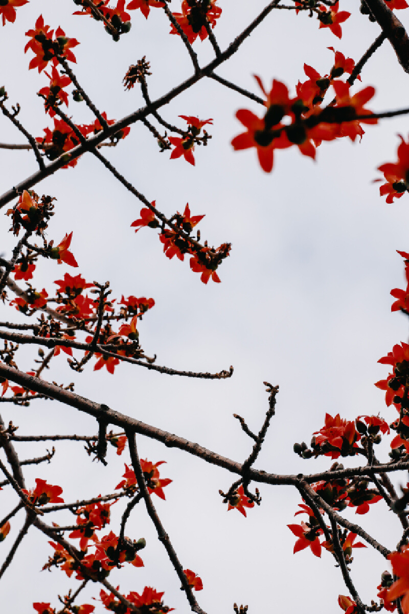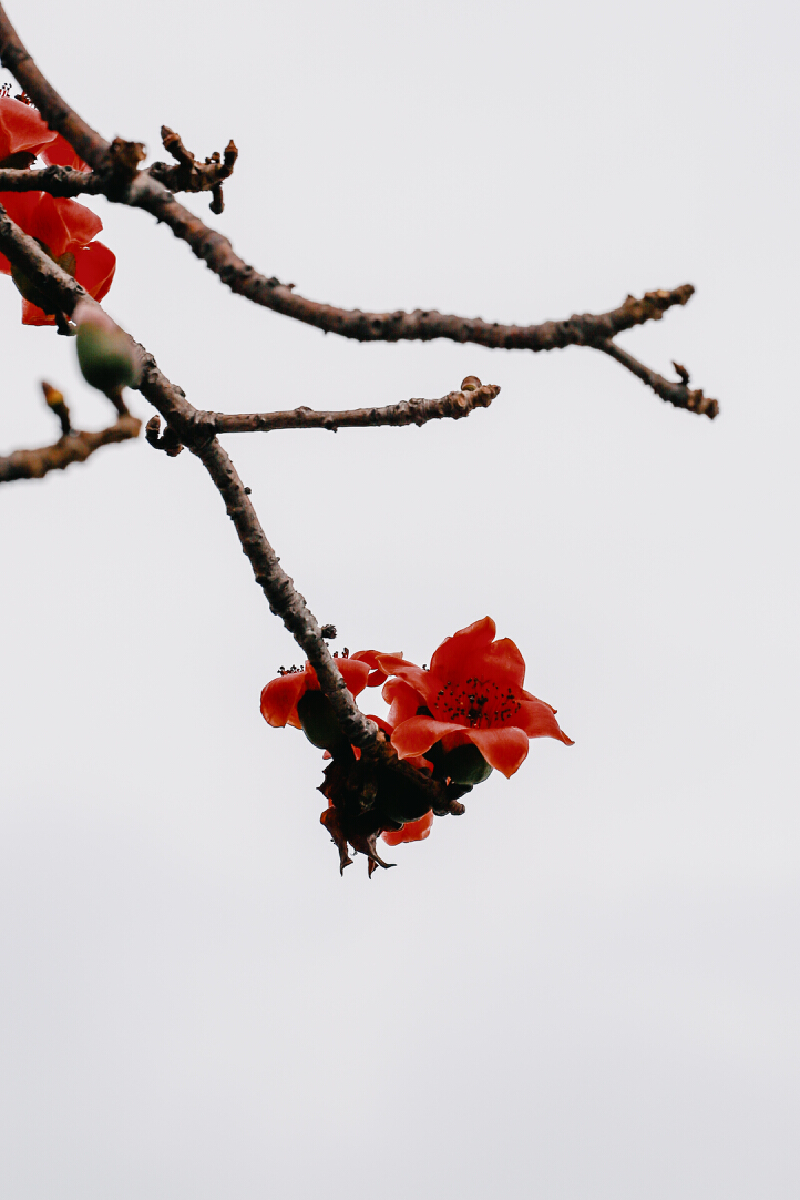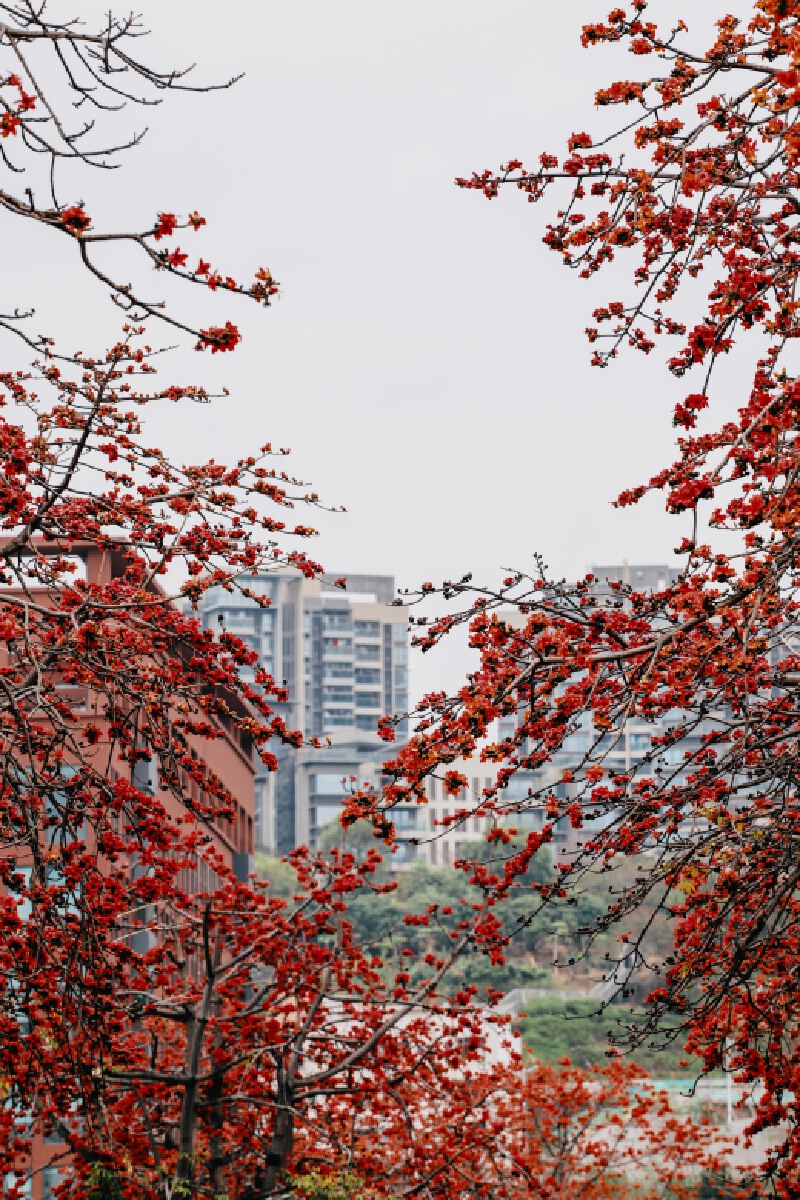 漫步于红棉树下,时不时会有一抹绯红从天而降,静静地落在头顶上,仿佛是春天送来的一次轻柔抚慰。