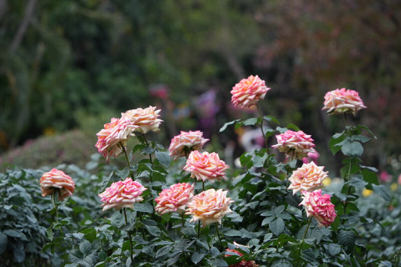 人民公园内展示的月季花超300种,有“初妆”、“绯扇”、“蜜桃雪山”、“摩纳哥公主”等来自世界各地的月季品种,它们在风中轻轻摇曳,向人们肆意展示着美丽身姿,婆娑倩影,宛如舞者翩跹起舞。
