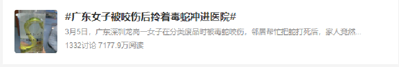 ▲“广东女子被咬伤后拎着毒蛇冲进医院”相关话题冲上热搜
