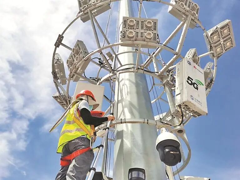 工作人员紧锣密鼓 开展5G基站建设。图源:晶报