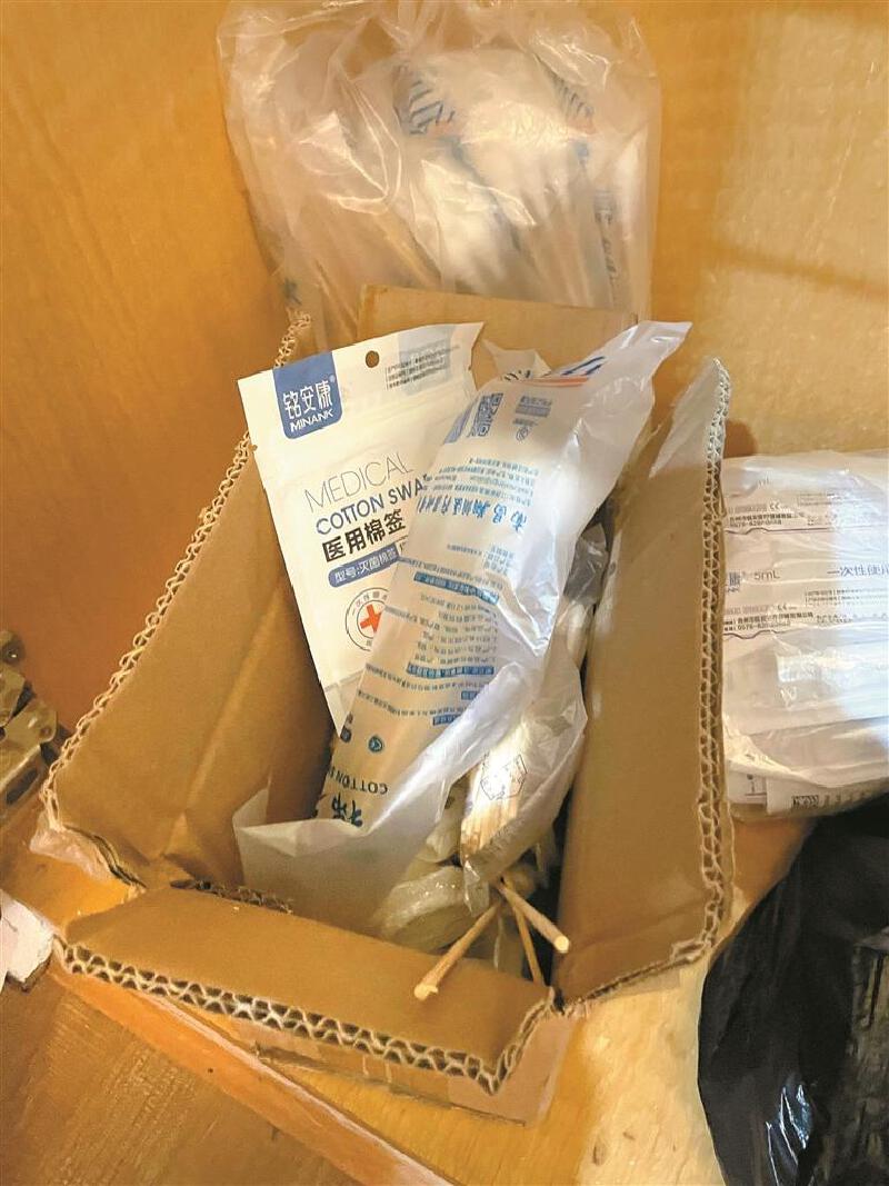 ▲③尚姿美容养生会所龙华分店内发现的医用棉签。