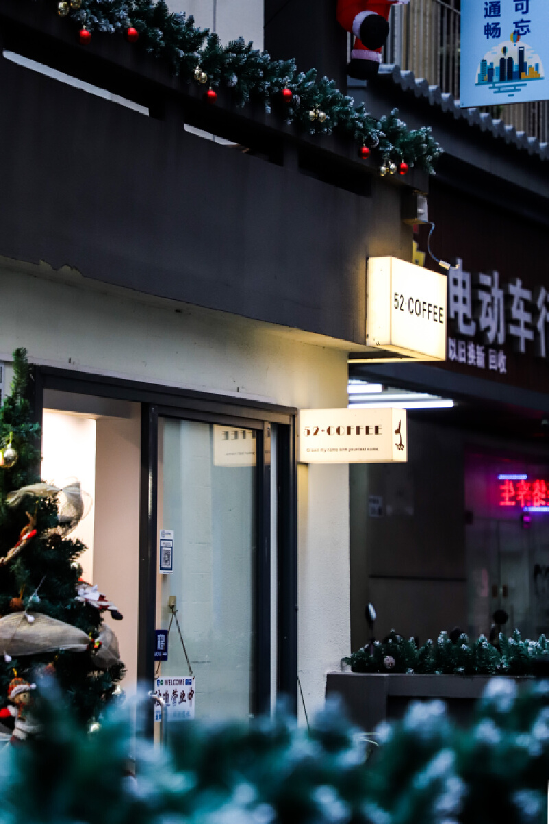 从桥头地铁站走出来,不远处即是一家独栋咖啡店——52·COFFEE,这家咖啡店自带小院子,在院子里吹吹风,读书聊天品咖啡,整个人倍感轻松自在。